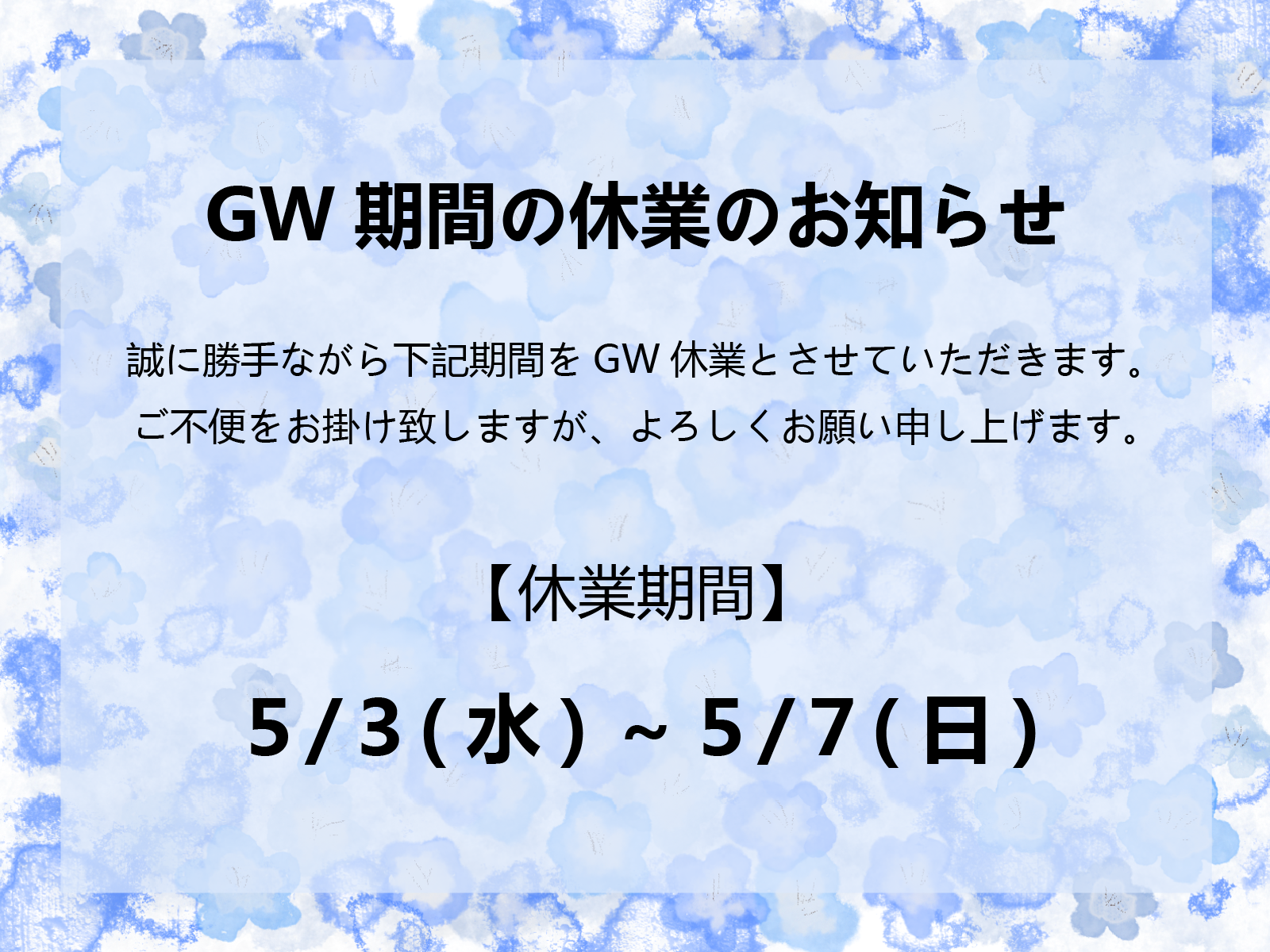 GW休業のお知らせ?